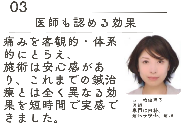 治療後に 「あっ 変わった」と わかりやすく効果を感じていただけるよう技術を探求しています。